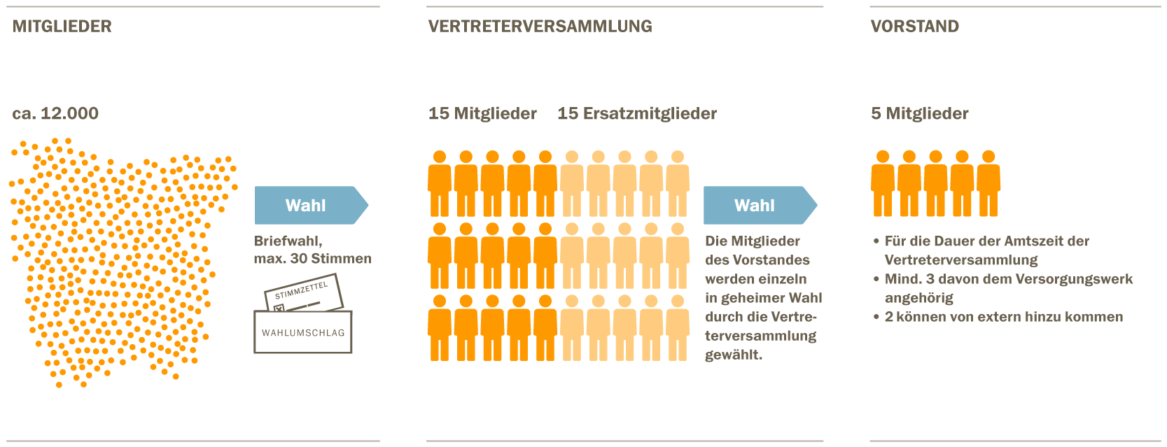 Die Wahl wird von einem Wahlausschuss vorbereitet, organisiert und geleitet, der aus sechs Mitgliedern des Versorgungswerkes besteht.